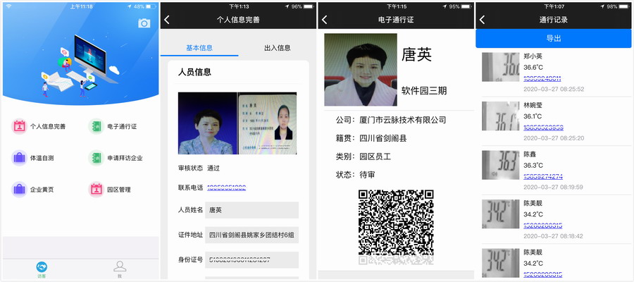 智慧门禁方案创新性的将证件识别、人脸识别、轨迹识别、身份认证、体温检测等各种技术集成于移动软件,提供来往人员信息实时登记、体温监测、位置定位等服务,实现智慧出入管理及疫情期间的智慧疫情防控。支持软硬件一体方案部署,也支持纯软件系统用以替代无需过闸的传统门禁。用户只需携带集多种安全身份于一体的智能手机,即可实现生活中方方面面的需求。